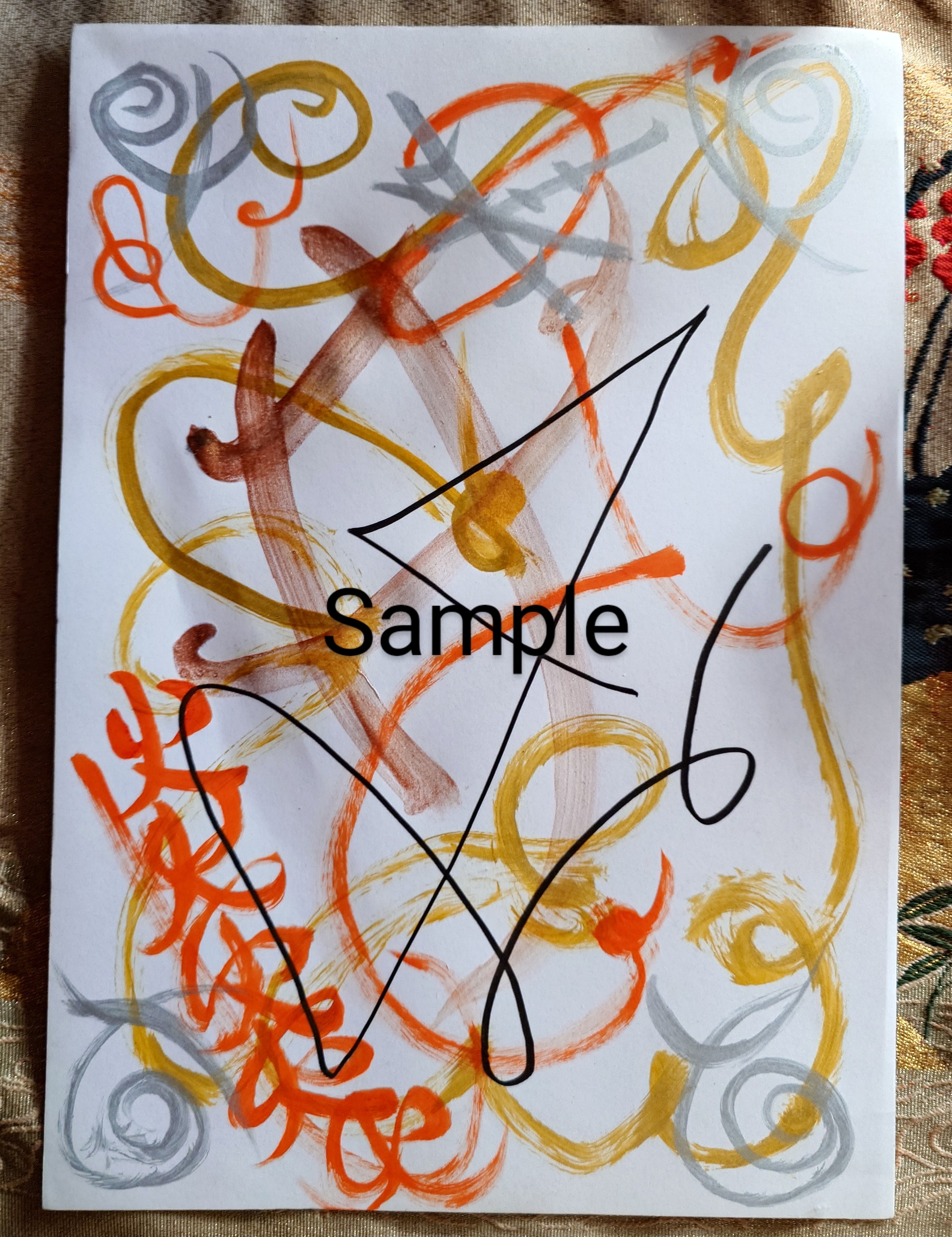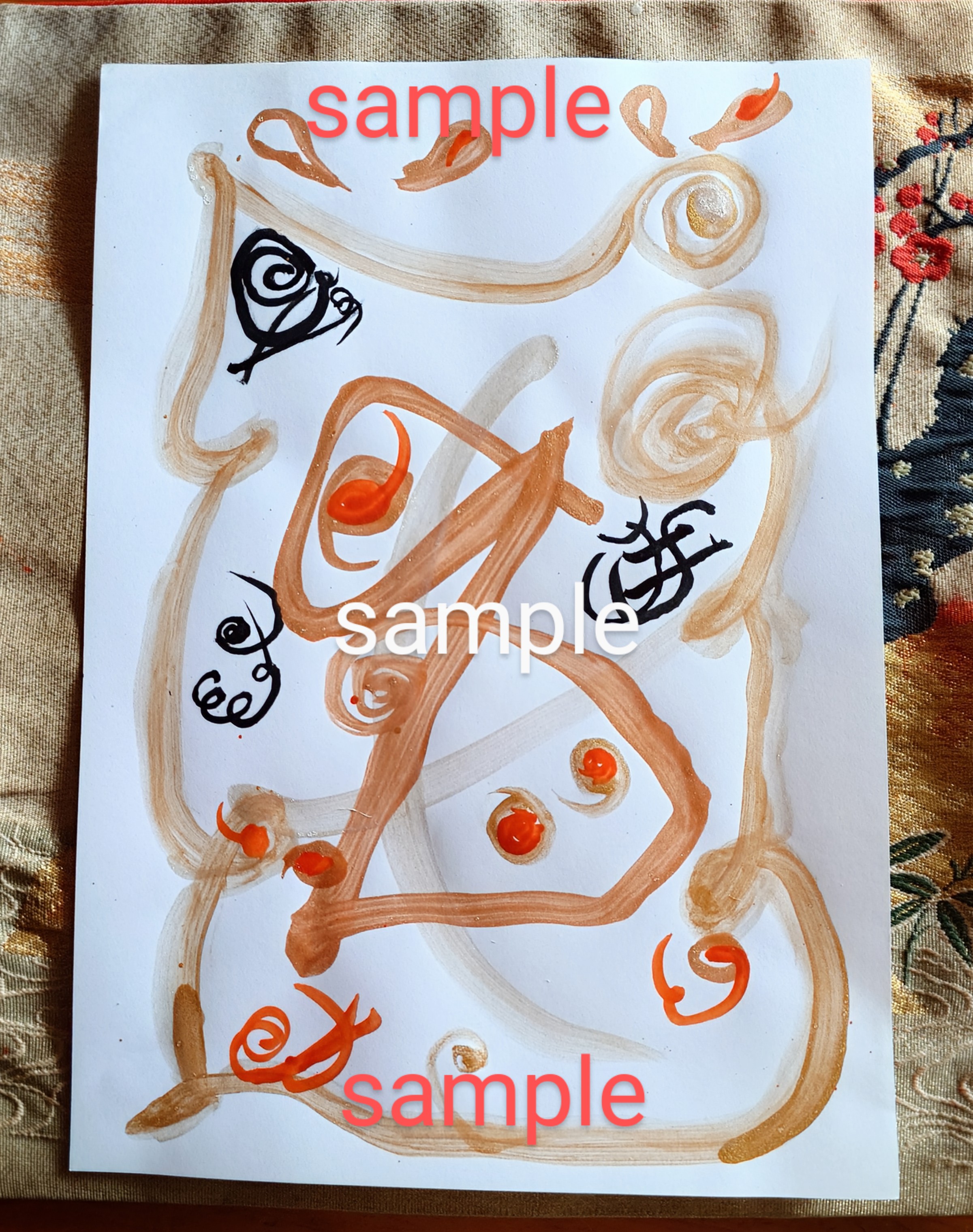 掲載しているアート図柄(サンプル)は2種ですが、お求めの護符への願いに応じて描かせて頂いております。